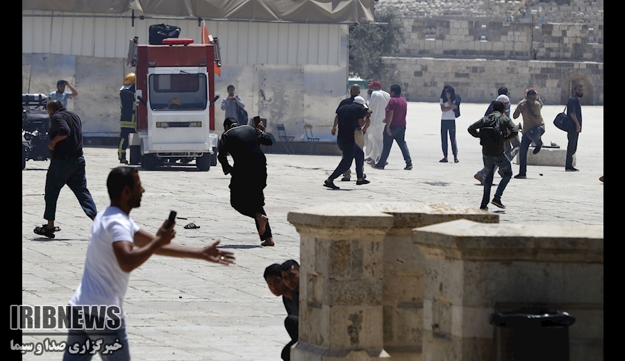 شهرک نشینان صهیونیست با پشتیبانی نظامیان امروز با ورود به صحن مسجدالاقصی با نمازگزاران فلسطینی درگیر شدند