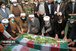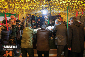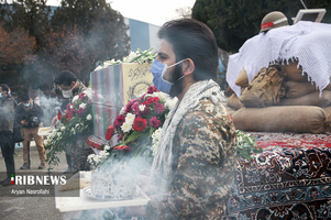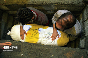 گروه عکس خبرگزاری صدا و سیما: پیکر مطهر ۲ شهید گمنام دوران دفاع مقدس که در عملیات کربلای ۵ به درجه رفیع شهادت نایل شده و در تفحصهای اخیر پیکر پاک آنها بعد از سالها پیدا شد، در محوطه دانشگاه فرهنگیان پس از تشییع به خاک سپرده شد.