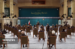 به گزارش گروه عکس خبرگزاری صداوسیما؛رهبر معظم انقلاب اسلامی در دیدار رئیس‌جمهور و اعضای هیئت دولت، بررسی و بیان عملکرد دولت و یاد و زنده نگه داشتن حوادث مهم انقلاب و ۴۳ سال اخیر را دو رویکرد اساسیِ هفته دولت برشمردند و با تشریح توفیقات یک‌ساله دولت، در بیان توصیه‌های مهم از جمله درباره اولویت مسئله اقتصاد افزودند: مردم در همه حوادث و رویدادها «قهرمان اصلیِ سرگذشتِ انقلاب» بوده‌اند و این واقعیت مایه درس و عبرت است و به همه مسئولان نشان می‌دهد که با این ملت باید چگونه رفتار کرد