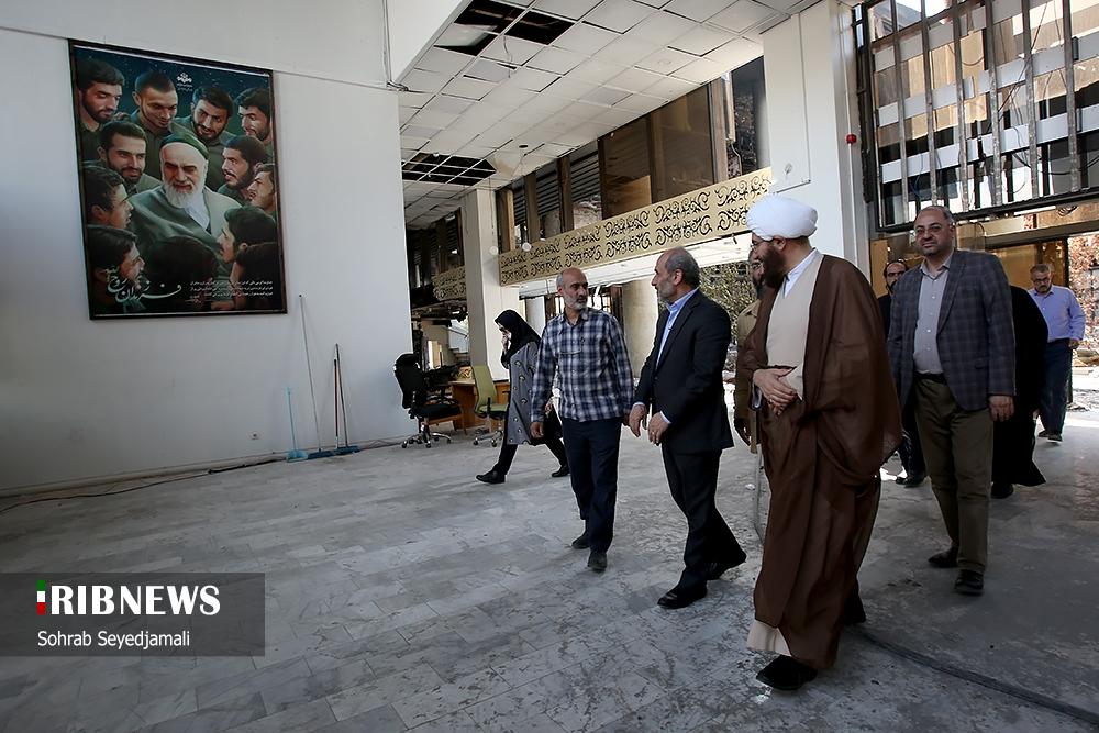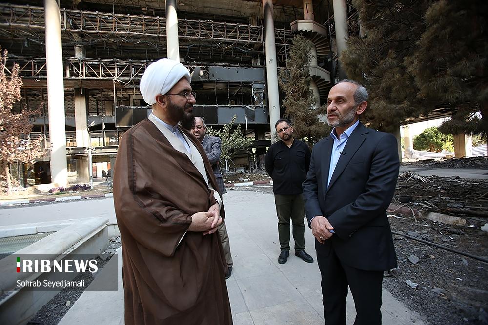 صبح امروز ۶ مرداد ماه ۱۴۰۴ رئیس ستاد برگزاری نماز جمعه تهران و شورای سیاستگذاری ائمه جمعه کشور، حجتالاسلام والمسلمین محمد جواد حاجعلیاکبری و برخی از طلاب و روحانیون با حضور، رئیس رسانه ملی، دکتر جبلی، از ساختمان شیشهای صدا و سیما، بازدید کردند و حمله رژیم صهیونیستی به این مرکز رسانهای ملی را، که هنگام پخش زنده اخبار انجام شد، به عنوان یک جنایت جنگی آشکار، محکوم کردند.