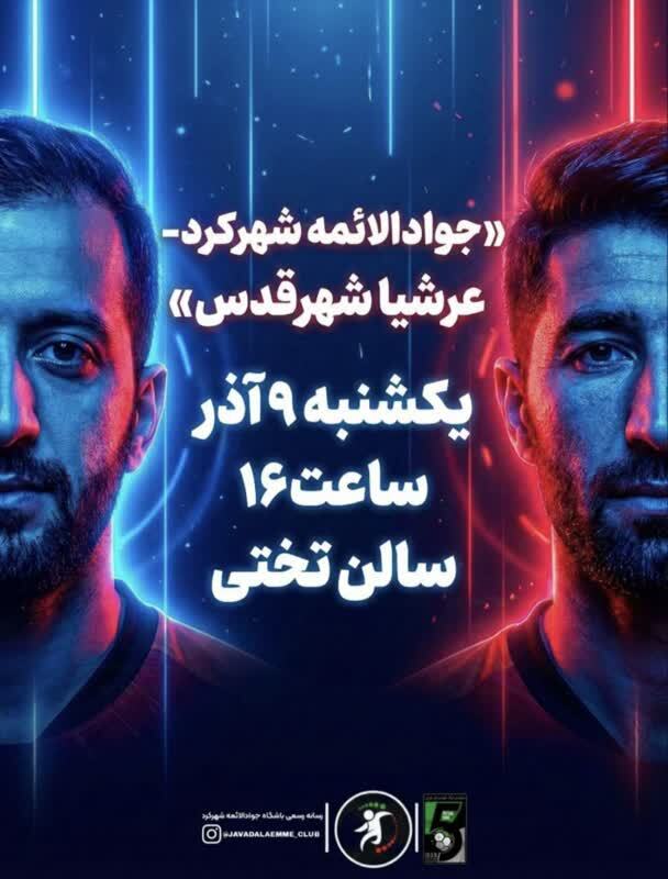 به گزارش خبرگزاری صدا و سیما مرکز چهارمحال و بختیاری،در این هفته جوادالائمه شهرکردبه مصاف عرشیا شهر قدس میرود.